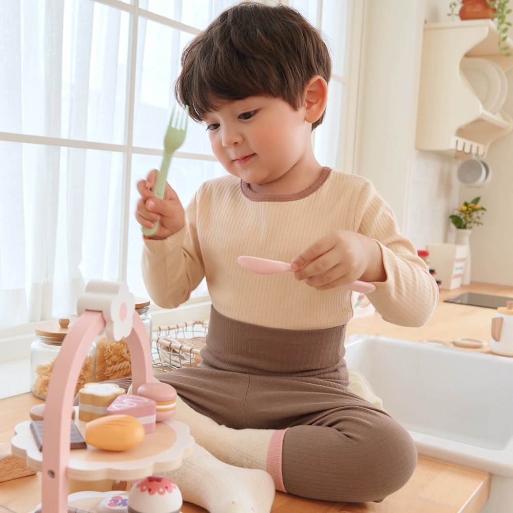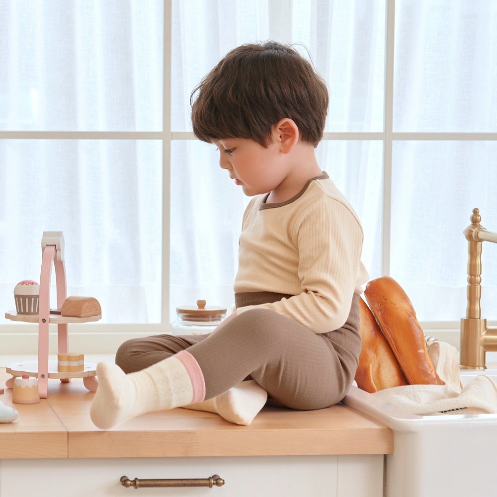 브라운 배앓이 방지 9부 상하세트 Brown Olomimi Set
