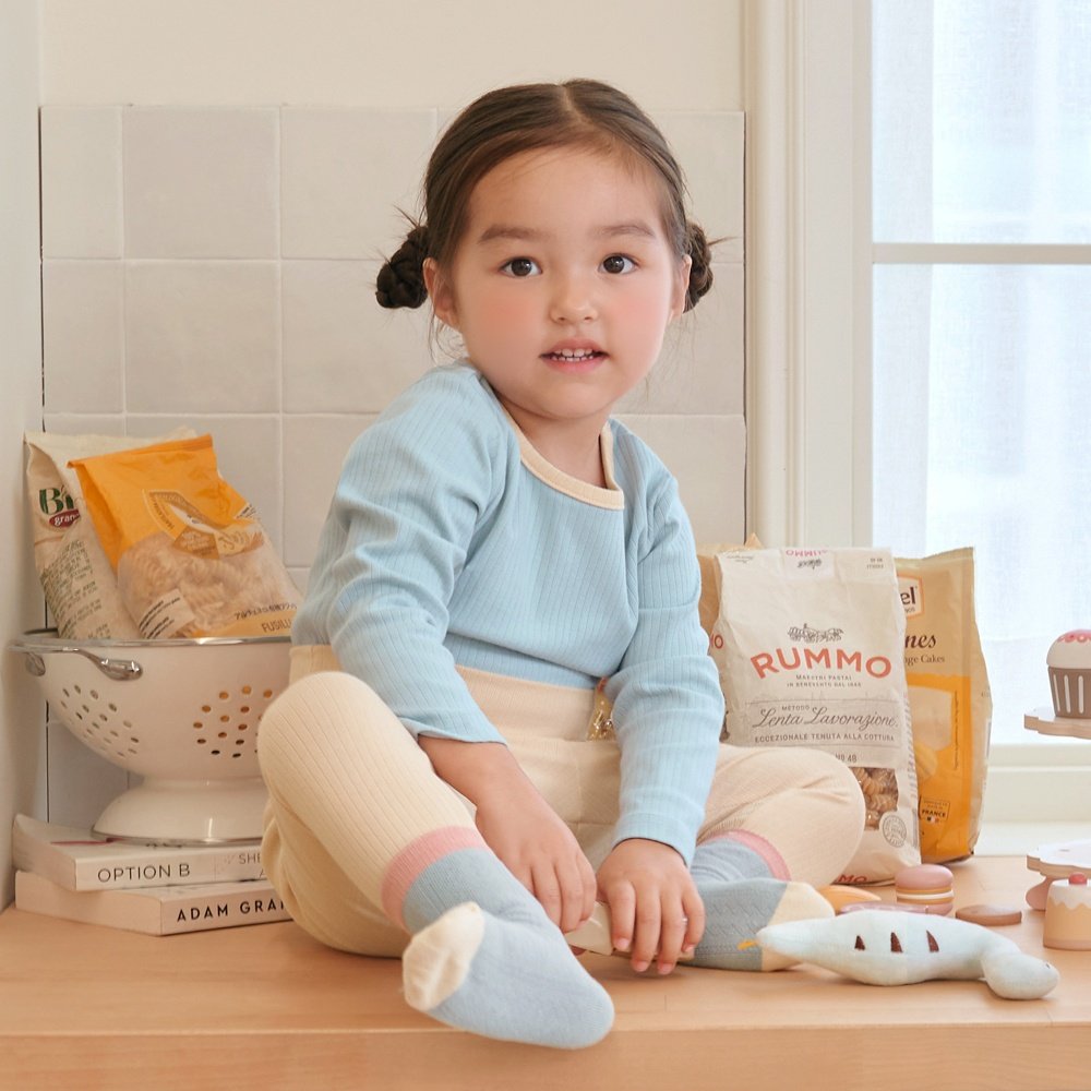 블루 배앓이 방지 9부 상하세트 Blue Olomimi Set