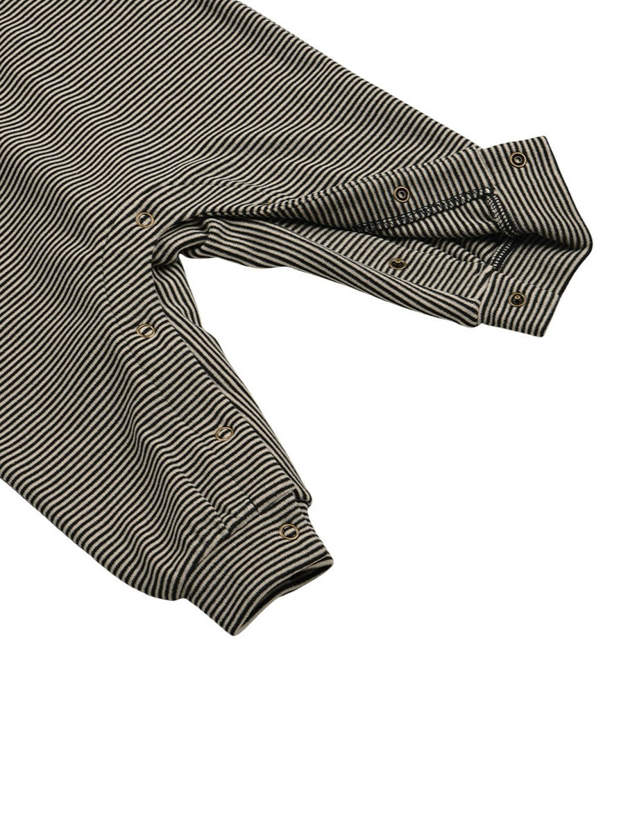 [BABY SET] Black Stripe Brushed Jumpsuit & Bib & Bonnet