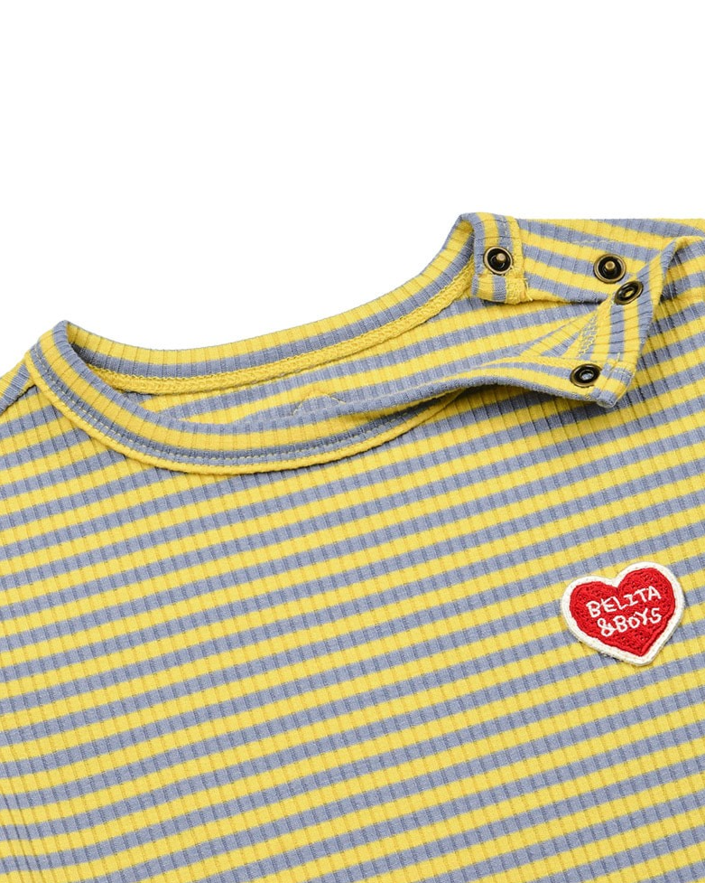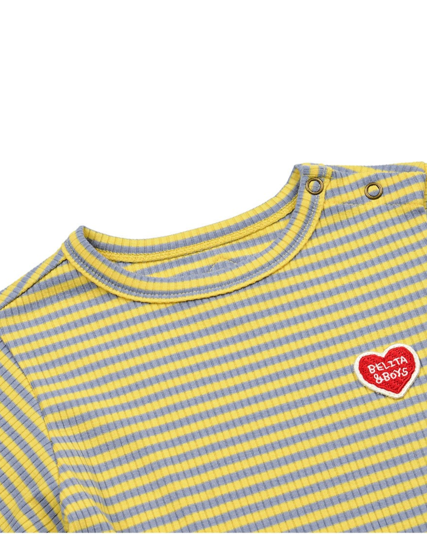 [BABY SET] Light Blue Stripe Rib Jumpsuit & Bib & Bonnet