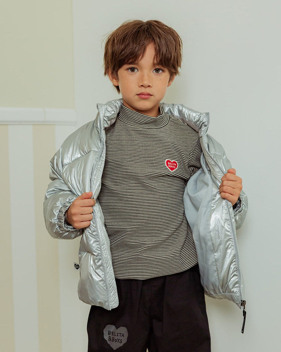Black BB Heart Stripe High Neck Long Sleeve