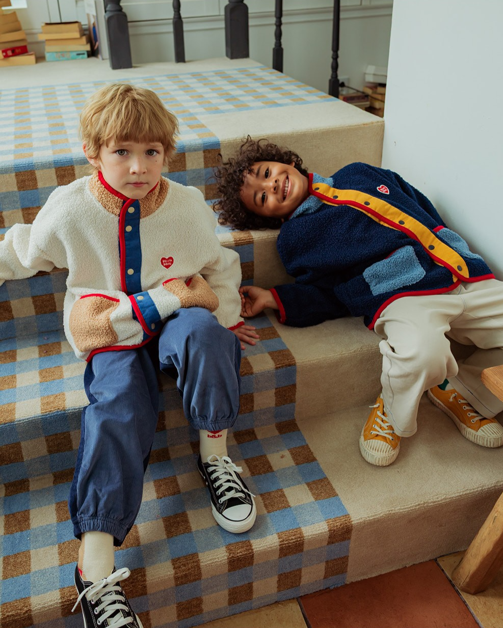 Navy BB Heart Color Block Dumble Fleece Jumper